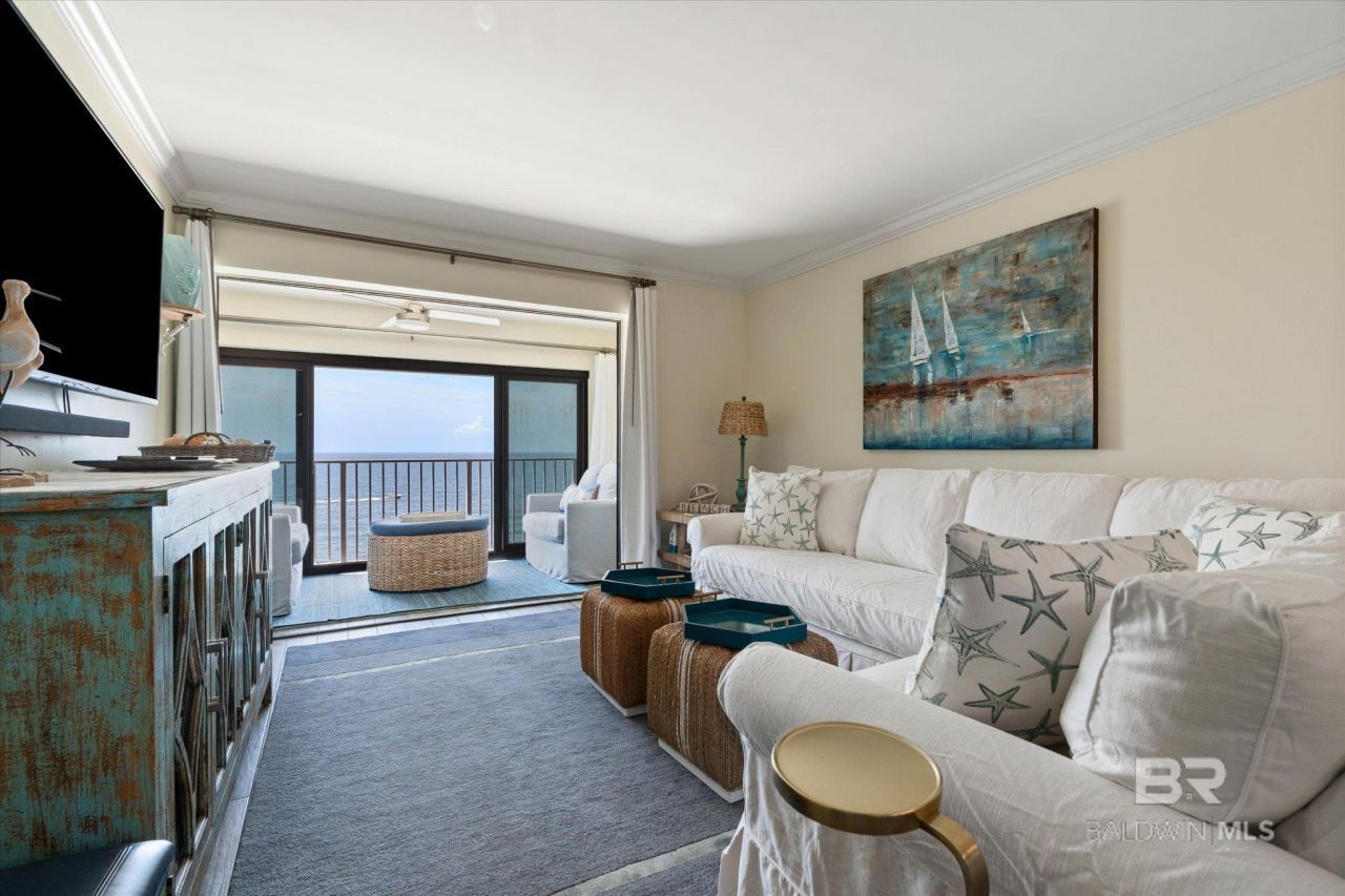 Gulf Front Luxury | Fully Renovated 2BR/2BA Condo | Gulf Shores Welcome to paradise! This stunning 2-bedroom, 2-bathroom condo in the Gulf Tower is a rare opportunity to own one of the most beautifully renovated units in the building?with panoramic, unobstructed Gulf views that will take your breath away. No insurance assessments last year or planned this year. No detail was overlooked in the full renovation of this beachfront gem. The kitchen and both bathrooms feature custom cabinetry, stone countertops, designer tile backsplashes, and under-cabinet lighting for a sleek, modern aesthetic. The kitchen is outfitted with high-end appliances, and the ceilings have been raised for an open, airy feel throughout. Both bathrooms boast custom tile floors, custom raised ceilings and surrounds, adding spa-like luxury.This condo comes fully furnished with high-end designer décor, including a plush sectional sofa with two custom Sunbrella fabric slipcover options?one of which is brand new, plus black out curtains on windows and sliders for added privacy and a great night's sleep! The enclosed sunroom/balcony offers additional seating that cleverly converts to two twin beds, bringing the total sleeping capacity to 8 guests.Key building upgrades include new roof (2021), New elevators (2023), Exterior stucco replaced and painted (2023), and Backup generator for peace of mind.Though it has been lovingly maintained as a non-rental since the renovation, the condo has a strong rental history, making it a fantastic investment or luxury retreat.This is truly the nicest unit in the complex?turnkey, tasteful, and ready for your next chapter by the sea. Buyer to verify all information during due diligence.